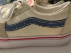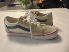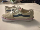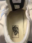 Elevate your active lifestyle with these sleek and stylish Vans sneakers. Designed for both men and women, these athletic shoes are perfect for any casual occasion. With a classic black color and sleek sneaker style, these shoes are sure to match any outfit. Crafted with quality materials and attention to detail, these pre-owned Vans are in great shape and ready to wear for their next owner. The US shoe size is 7 and they are designed with a comfortable fit for all-day wear. Don't miss out on the chance to add these Vans to your collection.