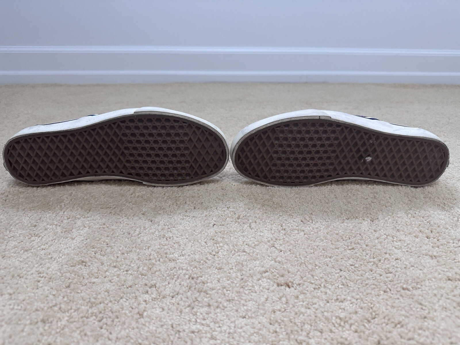 Elevate your sneaker game with these stylish Vans! The canvas upper is adorned with a fun multicolor design, perfect for adding a pop of color to any outfit. Designed for men in a size 10, these casual shoes are the perfect addition to your wardrobe. With the classic Vans style, these sneakers are perfect for any casual occasion. The brand is known for its quality and durability, making these shoes a great investment for your wardrobe. Don't miss out on these must-have sneakers! Gently worn, few times worn, maroon/burgundy color , please zoom-in for details