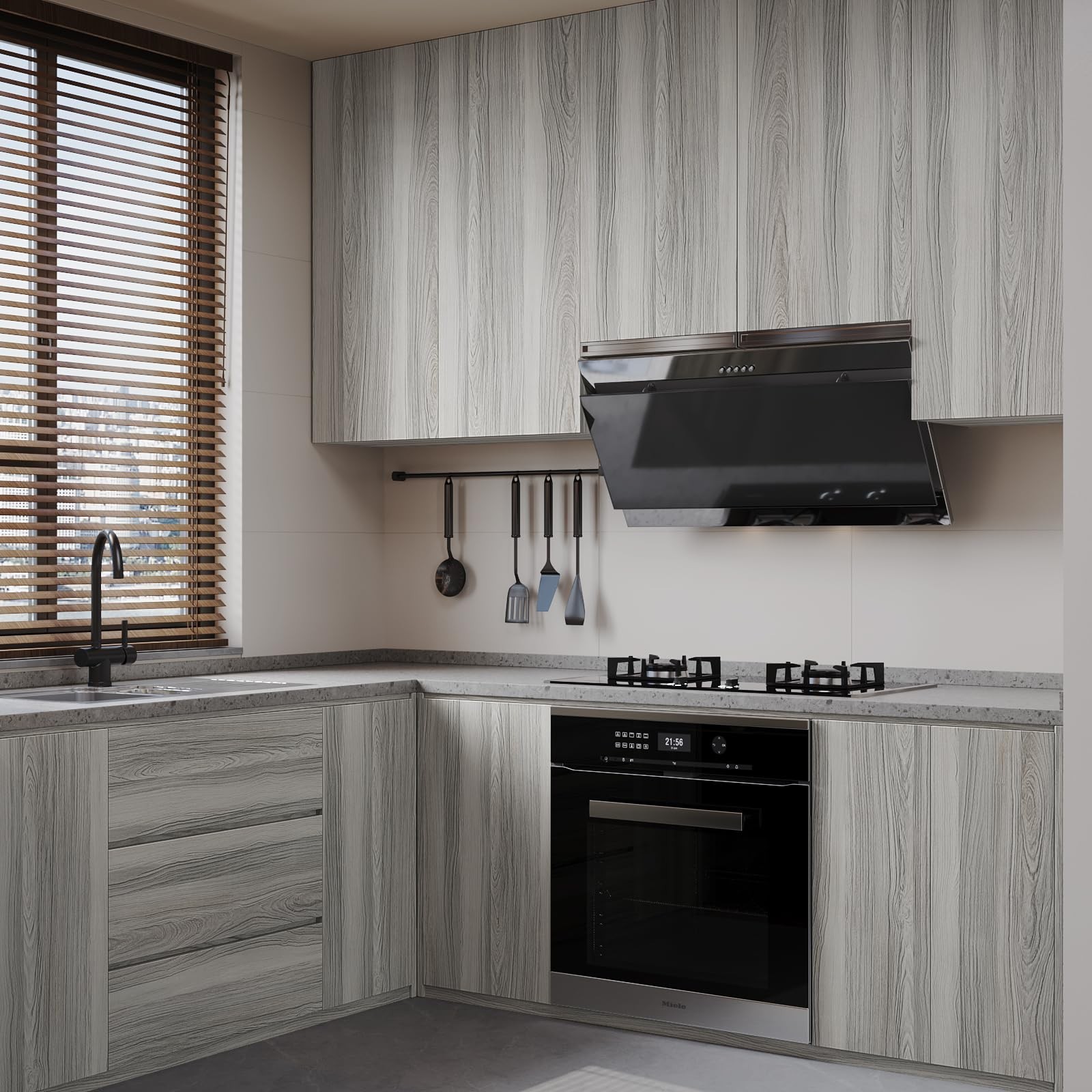 This peel-and-stick wood wallpaper is a game-changer! The light brown-grey vinyl looks so realistic, and it’s super easy to apply—no mess, just peel and stick. Perfect for updating cabinets, desks, or walls, and it’s waterproof too. The adhesive holds well but removes cleanly if needed. Great value for the size and quality!