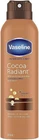 Vaseline Intensive Care Radiant Moisturizer Non Greasy Spray Body Lotion, Cocoa, 6.5 fl oz (PacK Of 3) V aseline Intensive Care Radiant Moisturizer Non Greasy Spray Body Lotion, Cocoa, 6.5 fl oz, Is the easy way to get even and full-body coverage that helps heal dry skin by delivering deep moisture. Vaseline is clinically proven to keep skin healed for 3 weeks (after using daily for 4 weeks), this non-greasy, fast-absorbing skin lotion is the perfect daily go-to moisturizer for dry skin. Utilize Vaseline Spray Lotion to enjoy instantly softer skin after showering, or whenever your skin feels dry. About this item Clinically proven lotion spray that moisturizes deeply, even within the first application, for glowing skin that looks and feels healthier Lotion is triple-purified microdroplets of Vaseline jelly create a protective barrier for skin care that locks in moisture for instantly softer skin A continuous non-aerosol spray dispenses non-greasy skincare moisturizer for dry skin that absorbs deeply without leaving a greasy residue Daily spray moisturizer that helps heal dry skin by combining 100% pure shea and cocoa butter with Vaseline trust formula that's been helping lock in moisture for over 150 years Vaseline Intensive Care Cocoa Radiant Spray Lotion is a light non-aerosol spray that makes it easy to apply this moisturizer for dry skin. Vaseline Spray moisturizer has a non-greasy, non-sticky formula that leaves dry skin feeling soft and fresh. This spray on lotion contains micro-droplets of Vaseline Jelly to lock in moisture and help heal dry skin. A continuous spray dispenses this dry skin body moisturizer evenly for all-over coverage. Use this spray on moisturizer after getting out of the shower for instantly softer skin or whenever your dry skin needs some extra moisture. Use this moisturizing spray body lotion as your daily moisturizer for dry skin. Dispenses Evenly, Quick-Absorbing, Inactive Ingredients Ingredients Water(Aqua), Isopropyl Myristaty, Glycerin, Sorbitan Isostearate, Dimethicone, Polyglyceryl-3 Didodtearate, Phenoxyethanol, Fragrance (Parfum), Tapioca Starch, Methylparaben, Carbomer,, ,Stearic Acid, Propylparaben, Xanthan Gum, Ammonium Acryloyldimethyltaurate/VP Copolymer, Disodium Edta, Theobroma Cacao (Cocoa) Seed Butter, Petrolatum. Ingredients Water (Aqua), Isopropyl Myristate, Glycerin, Sorbitan Isostearate, Dimethicone, Polyglyceryl-3 Diisostearate, Phenoxyethanol, Fragrance (Parfum), Tapioca Starch, Methylparaben, Carbomer, Stearic Acid, Propylparaben, Xanthan Gum, Ammonium Acryloyldimethyltaurate/Vp Copolymer, Disodium Edta, Theobroma Cacao (Cocoa) Seed Butter, Petrolatum Active Ingredients Cocoa