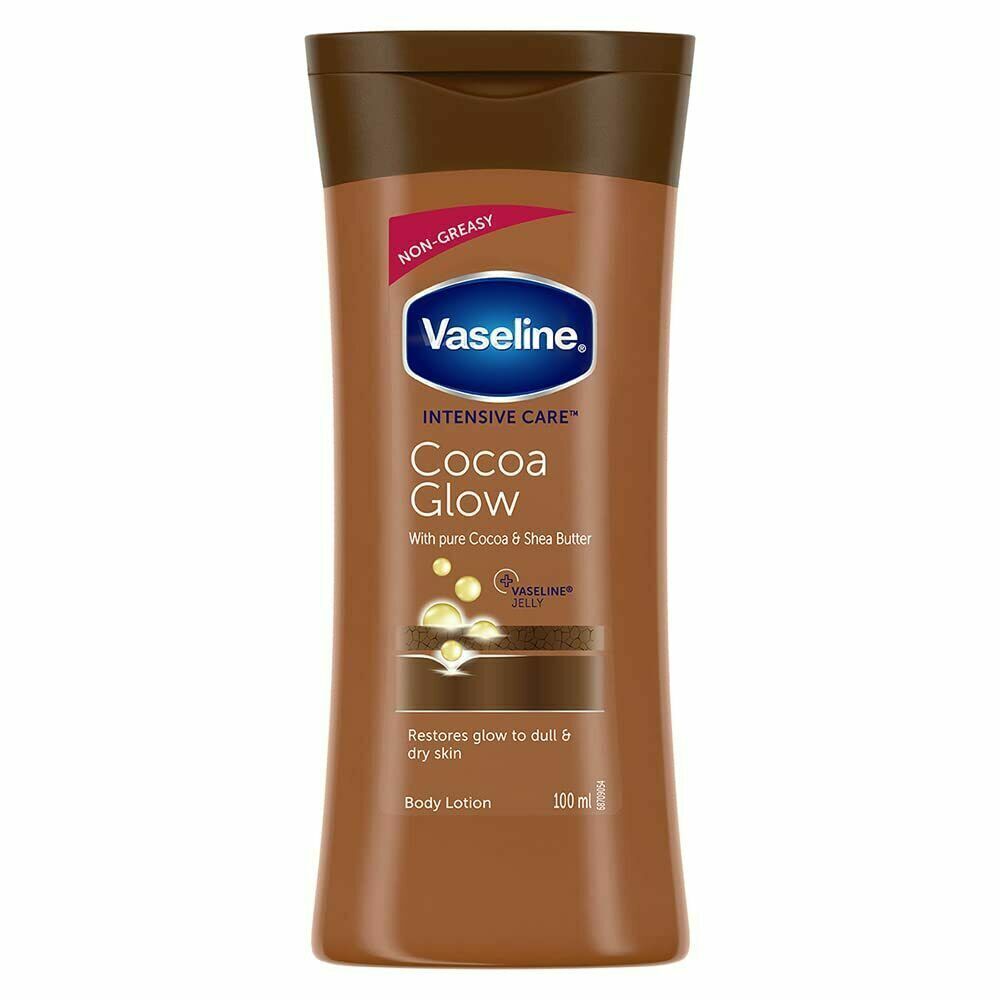 DESCRIPTION: Vaseline Intensive Care Cocoa Glow Moisturizing Body Lotion Dull Dry Skin 100 ml Description Vaseline Intensive Care Cocoa Glow Body Lotion moisturizes dry skin from the first application Vaseline Cocoa Glow Body Lotion is fast absorbing without feeling greasy Contains 100% pure cocoa and shea butters, known to reveal skin?s natural glow and micro-droplets of Vaseline Jelly to lock in moisture Heals dry skin for glowing radiance with rich moisturization Daily body lotion best for: dry skin, dull skin, rough skin Suitable for all skin types. PAYMENT POLICY Payment should be cleared within 3 (three) days of sale and we prefer PayPal payment method only. WORLDWIDE SHIPPING POLICY Item will be send by ordinary registered airmail service (India Post) which may take 10 to 15 days but we assume maximum 28 business days for deliver it . You will have to sing on delivery at the time of receiving item We also provide speed post shipping service (EMS) . For this service you need to pay shipping charges. As per the item weight and country location. RETURN POLICY In case of any problems after receiving the item. Please contact within 7 days and only the purchase amount will be refunded not the postage amount. One side postage for returning the item will be paid by the buyer. Money will be refunded by Paypal after the item is received. CUSTOM POLICY Import duties, taxes and charges are not included in the item price or the shipping charges. These charges are the buyer's responsibility. Please check with your local customs authority to determine these additional costs prior to bidding or buying. LEGAL DISCLAIMER While we work to ensure that product information is correct, on occasion manufacturers may alter their ingredient lists. Actual product packaging and materials may contain more and/or different information than that shown on our web site. We recommend that you do not solely rely on the information presented and that you always read labels, warnings, and directions before using or consuming a product. For additional information about a product, please contact the manufacturer. FEEDBACK POLICY Please do not leave a negative feedback as a way to communicate. Any rating given to a seller can neither be changed nor modified. So better, communicate for faster resolution to any disputes. If you have any concerns regarding your purchase, please contact satisfactory resolution will be reached. If you like our product tell others, if not tell us, we will do our best to deliver as per commitment. Our first priority is buyer?s satisfaction and we always ready to take every possible steps in buyer favor. CONTACT US For Any query , we request you to either use the ask question button. we normally reply back the same day or the next working day. We are available 24*7.We reply back to emails within 12-24 Hours. WE ALWAYS WELCOME BULK ORDERS PAYMENT POLICY Payment should be cleared within 3 (three) days of sale and we prefer PayPal payment method only. WORLDWIDE SHIPPING POLICY Item will be send by ordinary registered airmail service (India Post) which may take 10 to 15 days but we assume maximum 28 business days for deliver it . You will have to sing on delivery at the time of receiving item We also provide speed post shipping service (EMS) . For this service you need to pay shipping charges. As per the item weight and country location. RETURN POLICY In case of any problems after receiving the item. Please contact within 7 days and only the purchase amount will be refunded not the postage amount. One side postage for returning the item will be paid by the buyer. Money will be refunded by Paypal after the item is received. CUSTOM POLICY Import duties, taxes and charges are not included in the item price or the shipping charges. These charges are the buyer's responsibility. Please check with your local customs authority to determine these additional costs prior to bidding or buying. LEGAL DISCLAIMER While we work to ensure that product information is correct, on occasion manufacturers may alter their ingredient lists. Actual product packaging and materials may contain more and/or different information than that shown on our web site. We recommend that you do not solely rely on the information presented and that you always read labels, warnings, and directions before using or consuming a product. For additional information about a product, please contact the manufacturer. FEEDBACK POLICY Please do not leave a negative feedback as a way to communicate. Any rating given to a seller can neither be changed nor modified. So better, communicate for faster resolution to any disputes. If you have any concerns regarding your purchase, please contact satisfactory resolution will be reached. If you like our product tell others, if not tell us, we will do our best to deliver as per commitment. Our first priority is buyer?s satisfaction and we always ready to take every possible steps in buyer favor. CONTACT US For Any query , we request you to either use the ask question button. we normally reply back the same day or the next working day. We are available 24*7.We reply back to emails within 12-24 Hours.