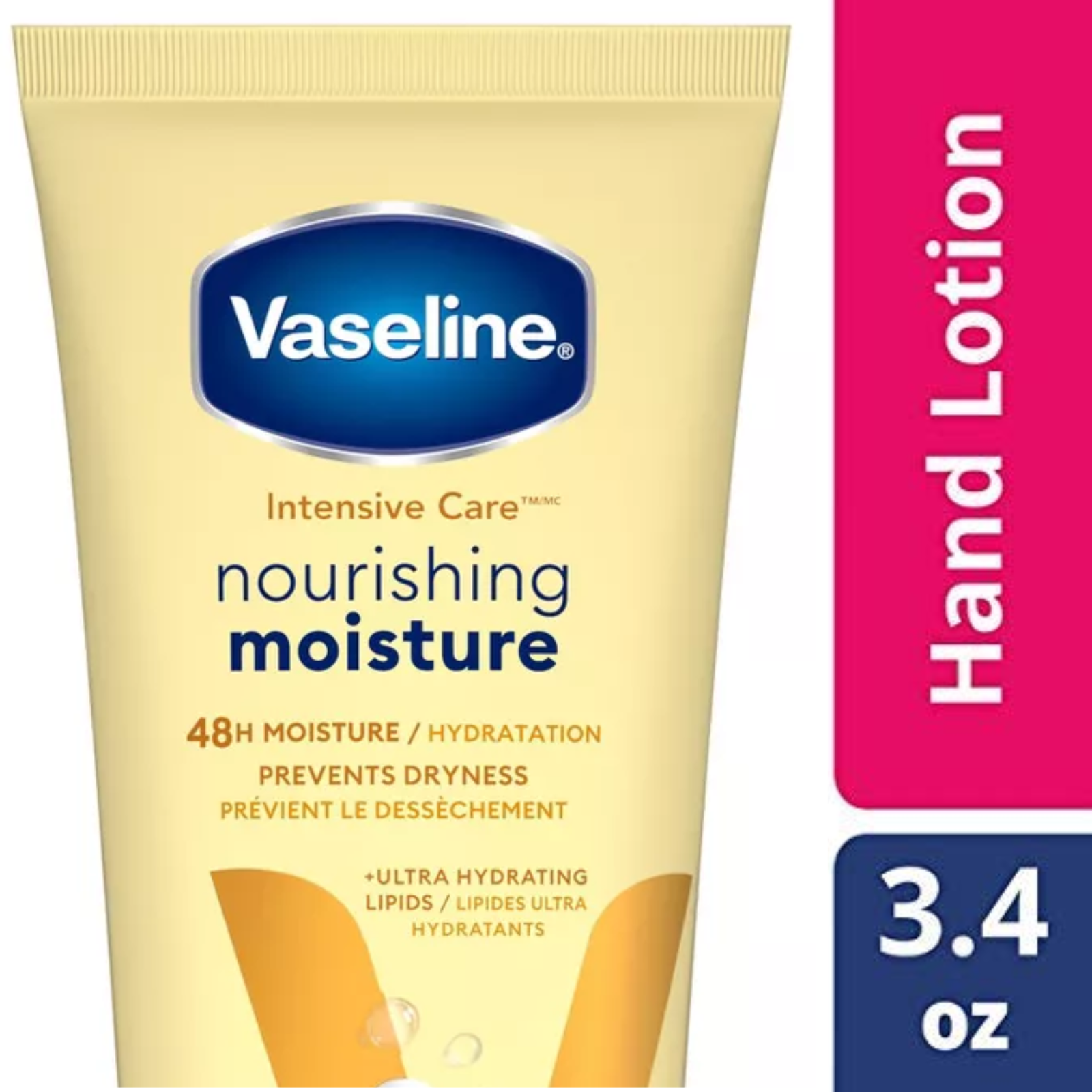 Vaseline Intensive Care Essential Healing Nourishing Moisture.Lotion, 3.4oz (Pack of 3) Vaseline Intensive Care Essential Healing is now Vaseline Intensive Care Nourishing Moisture. Vaseline Intensive Care Nourishing Moisture lotion locks in moisture and deeply nourishes for healthy-looking skin. This body lotion is formulated with Pure Oat Extract and Ultra-Hydrating Lipids that fortify the skin barrier and replenish moisture. With daily exposure to environmental triggers skin's natural moisture barrier can break down, allowing for water to escape the skin. About this item Vaseline Intensive Care Nourishing Moisture Lotion locks in moisture and deeply nourishes for healthy-looking skin This body lotion for dry skin is formulated with Pure Oat Extract and Ultra-Hydrating Lipids that fortify the skin barrier and replenish moisture This body lotion for dry skin is clinically tested to provide 90% more moisture (vs. untreated skin) This fast-acting body lotion absorbs quickly to leave your skin hydrated without feeling greasy This Vaseline Intensive Care body moisturizer bottle is made of 50% recycled plastic. Our ambition is to get to 100% recycled plastic in the near future Skin health is essential for well-being. We’re helping those underserved get better care for their skin Moisturizes dry skin.. Fast-acting lotion absorbs quickly, allowing you to get dressed within minutes of application.. Absorbs fast for a non-greasy feel.. Daily body lotion best for: dry skin, rough skin.. Infused with micro-droplets of Vaseline Jelly and rich moisturizers.. Clinically proven to moisturize deeply within the first application, for noticeably healthier looking skin.. Vaseline Intensive Care Essential Healing Body Lotion moisturizes dry skin Vaseline Essential Healing Body Lotion is fast absorbing for a non-greasy feel Contains microdroplets of Vaseline Jelly to lock in moisture Clinically proven to moisturize deeply within the first application, for noticeably healthier looking skin Ingredients Water, Glycerin, Stearic Acid, Isopropyl Myristate, Mineral Oil, Glyceryl Stearate, Glycol Stearate, Dimethicone, Peg-100 Stearate, Petrolatum, Cetyl Alcohol, Tapioca Starch, Phenoxyethanol, Magnesium Aluminum Silicate, Methylparaben, Acrylates/C10-30 Alkyl Acrylate Crosspolymer, Fragrance, Propylparaben, Disodium Edta, Xanthan Gum, Stearamide Amp, Avena Sativa (Oat) Straw Extract, Titanium Dioxide (Ci 77891).