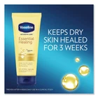 Product Description Vaseline Intensive Care Essential Healing is now Vaseline Intensive Care Nourishing Moisture. Vaseline Intensive Care Nourishing Moisture lotion locks in moisture and deeply nourishes for healthy-looking skin. This body lotion is formulated with Pure Oat Extract and Ultra-Hydrating Lipids that fortify the skin barrier and replenish moisture. With daily exposure to environmental triggers (like wind, lack of humidity, and sun), skin's natural moisture barrier can break down, allowing for water to escape the skin. But the Ultra-Hydrating lipids in our lotion fortify the skin barrier and replenish moisture to allow the skin's natural barrier to recover. This lotion locks in moisture and promotes smooth, naturally glowing skin. The body moisturizer is clinically tested to provide 90% more skin moisture (vs. untreated skin). This body lotion for dry skin absorbs fast for rich moisturization without the residue and provides 48-hour moisture. Use this dermatologist-tested body lotion daily on dry, rough skin for stronger, noticeably healthy skin. Just apply to your skin for hydrating relief. This Vaseline lotion bottle is made of 50% recycled plastic. Our ambition is to get to 100% recycled plastic in the near future. FOR NOURISHED, HEALTHY SKIN: Vaseline Intensive Care Nourishing Moisture Lotion locks in moisture and deeply nourishes for healthy-looking skin FORMULATED WITH ULTRA-HYDRATING LIPIDS: This body lotion for dry skin is formulated with Pure Oat Extract and Ultra-Hydrating Lipids that fortify the skin barrier and replenish moisture FEEL THE DIFFERENCE: This body lotion for dry skin is clinically tested to provide 90% more moisture (vs. untreated skin) NON-GREASY FEEL: This fast-acting body lotion absorbs quickly to leave your skin hydrated without feeling greasy RECYCLED PLASTIC: This Vaseline Intensive Care body moisturizer bottle is made of 50% recycled plastic. Our ambition is to get to 100% recycled plastic in the near future EQUITABLE SKIN CARE FOR ALL: Skin health is essential for well-being. We’re helping those underserved get better care for their skin Moisturizes dry skin.. Fast-acting lotion absorbs quickly, allowing you to get dressed within minutes of application.. Absorbs fast for a non-greasy feel.. Daily body lotion best for: dry skin, rough skin.. Infused with micro-droplets of Vaseline Jelly and rich moisturizers.. Clinically proven to moisturize deeply within the first application, for noticeably healthier looking skin.. Vaseline Intensive Care Essential Healing Body Lotion moisturizes dry skin Vaseline Essential Healing Body Lotion is fast absorbing for a non-greasy feel Contains microdroplets of Vaseline Jelly to lock in moisture Clinically proven to moisturize deeply within the first application, for noticeably healthier looking skin Ingredients Water, Glycerin, Stearic Acid, Isopropyl Myristate, Mineral Oil, Glyceryl Stearate, Glycol Stearate, Dimethicone, Peg-100 Stearate, Petrolatum, Cetyl Alcohol, Tapioca Starch, Phenoxyethanol, Magnesium Aluminum Silicate, Methylparaben, Acrylates/C10-30 Alkyl Acrylate Crosspolymer, Fragrance, Propylparaben, Disodium Edta, Xanthan Gum, Stearamide Amp, Avena Sativa (Oat) Straw Extract, Titanium Dioxide (Ci 77891).