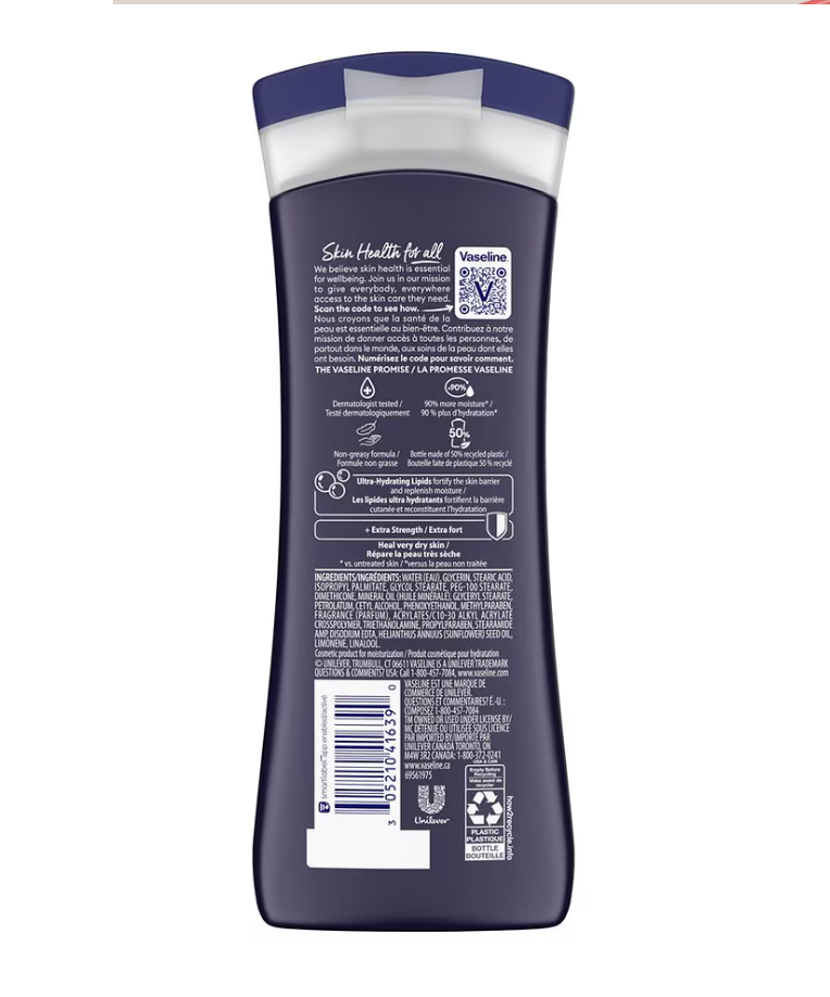The Vaseline Men Deep Healing Moisture Extra Strength Body and Face Lotion is a 10 fl oz moisturizer formulated specifically for men. With active ingredients like glycerin, this lotion provides deep hydration for all skin types, promising to heal very dry skin in just 5 days. Made by Vaseline, known for their quality skincare products, this animal cruelty-free lotion is ideal for daily use on the body and face. Its fresh scent and hydrating formula make it a great addition to any skincare routine, offering sun protection and lasting relief for dry skin.