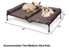 Open box New item! Double Dog Bed: Measuring 49" x 33" x 9", with each individual slot at 18.5" x 29", comfortably accommodates two medium-sized pets. It allows your pets to be together while enjoying their own space, while looks neater than 2 separate beds. Perfect for family with multiple dogs or cats Double Comfort Dog Cot: The bolster mat provides a cozy and comfortable place for your furry friends to rest, and the raised sides offer a sense of security and support. With soft PP cotton filling and cooling touch surface, the dog beds are sure to please even the pickiest of pets Cooling Elevated Dog Bed: The raised pet bed enables your pets get rid of wet hard dirty floor and helps their joint relieved. And the breathable Teslin mesh allows cooling breeze flow through the bed to make pets refreshing in sultry summer Robust and Stable: Our raised dog bed is composed of thick Powder-Coated steel, durable Teslin mesh, and the non-slip feet, with a high load capacity; Moreover, the removable bolster mat is waterproof & anti-scratch, and a non-slip bottom and velcros can fasten it in place User-Friendly: Our bolster dog bed is easy to install with the snap-on design, no tools needed; Lightweight and portable, perfect for indoor or outdoor use; Cleaning is a breeze, just wipe it down simply for daily upkeep or hose it off