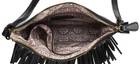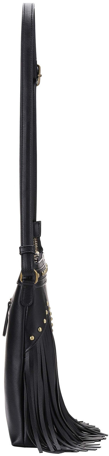 Vegan Purse: Faux cowhide leather with fabric lining and brass-tone hardware One top zipper closure and one back zipper pocket measuring 5.8”(L) x 4.5”(H). Three interior pockets: one zipper pocket measuring 6.8”(L) x 4.3”(H), two open pockets measuring 4.6”(L) x 5”(H) and 2.6”(L) x 5”(H). There are two levels of fringe: the top layer comes down 0.5” lower than the purse and the lower level fringe comes lower 1.6” than the purse. Easily fits a small wallet, cellphone, small notebook, pens/pencils, makeup or whatever items you use on a routinely basis. 9.5"(L) x 10"(H) x 0.75"(W) with an adjustable strap from 10.5” to 22.5” shoulder drop (the actual length of strap from one end to the other measure from 26” to 50”) Great for fashionable accent in your everyday style. Perfect for the trendsetting students, the hard-working, chic workers, the stylish hikers, the night-out and/or a day in the park or amusement park. It is simple yet chic, lightweight yet stylish, and pragmatic yet trendy. Stylish yet durable and practical.