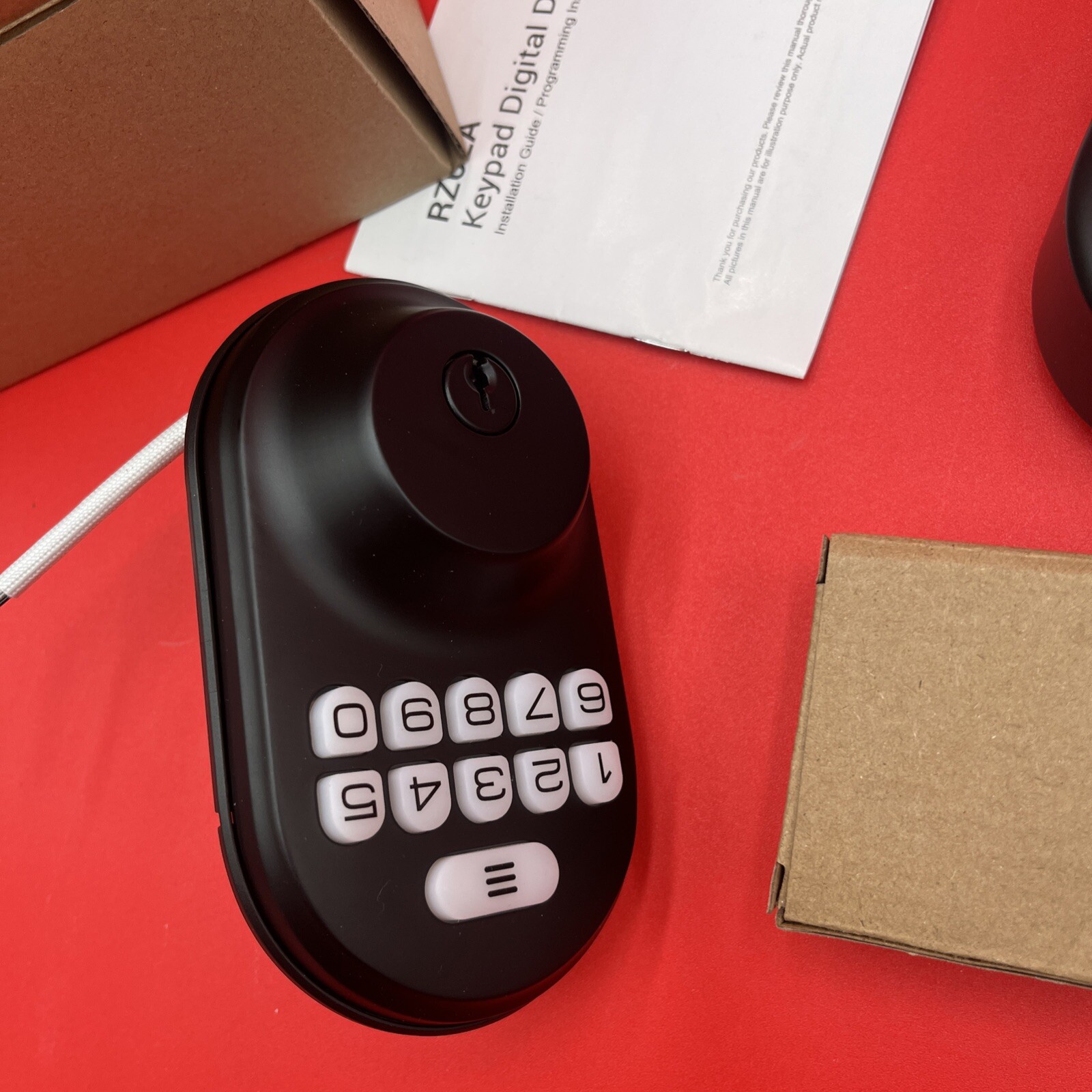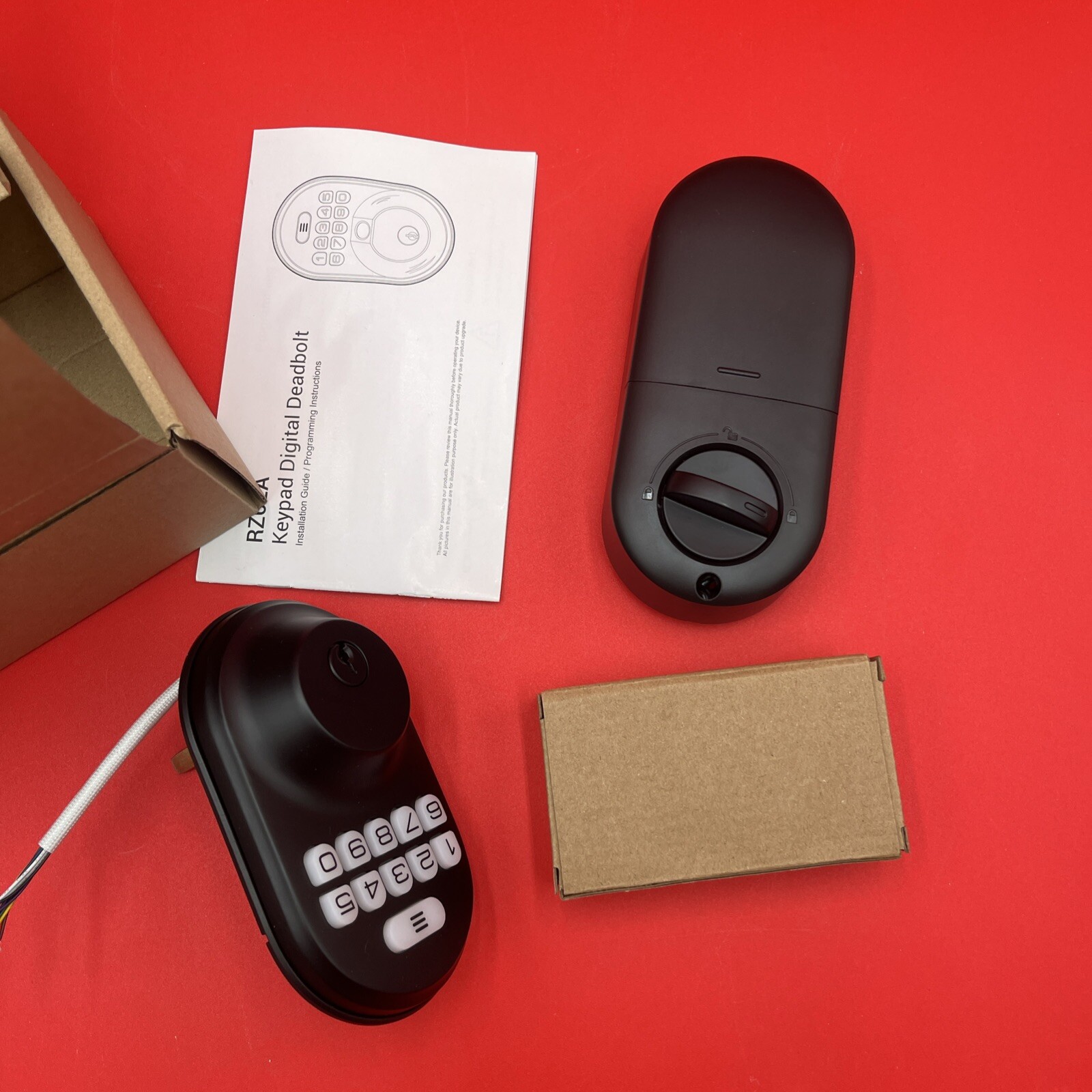 Veise RZ-A Keypad Digital Deadbolt is a black keyless entry door lock suitable for residential front and side/back doors. It features a satin finish and is made of nickel. The fixings are supplied, and it is designed by Veise. This new and unused deadbolt lock from China offers secure and convenient access control for your home.