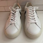 The Veja Esplar Sneakers for women in size 8 are a stylish and versatile option for athletic wear. Featuring a low top design with a lace-up closure, these sneakers offer a comfortable fit for everyday wear. The white and black colorway adds a touch of modern flair to the classic sneaker style, making them a timeless choice for any wardrobe. Made by the sustainable and stylish brand Veja, these sneakers are both fashionable and eco-friendly. Perfect for casual outings or a gym workout, the Veja Esplar Sneakers are a must-have for any streetwear enthusiast.
