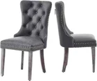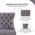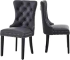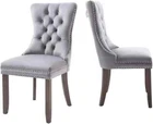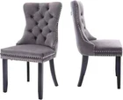 Color Grey Product Dimensions 24"D x 20"W x 38"H Size set of 6 Back Style Solid Back About this item Quality velvet fabric: These wingback dining chairs are made of high-quality velvet fabric, which has super wear resistance and will not fade, the fabric is thick and luxurious, the touch is very delicate. This velvet dining chairs set featuring a very modern mid-century look. Ergonomic High Back: This wingback dining chair set is equipped with high backrest for a strong comfortable back support. Plenty decorative rivet inset around cushion and back not only make it looks noble and elegant but also give the whole chair a feeling of exquisite luxury. Soft and Comfortable Kitchen Chairs: The Cushion uses a high elasticity foam and multilayer board, double elastic structure with a high rebound sponge, providing you with a comfortable seating experience. And brings a very warm atmosphere into dining room,sitting room and apartment. Sturdy Upholstered Dining Chairs & Easy to Assemble: The chair's frame and legs are made of solid wood with enough security to hold up to 280 pounds. Please use the instructions and assembly tool inside the package to complete the assembly. Adjustable pegs on the legs allow you to adjust the height of the legs. After-sales Service: We provide two years warranty and free return for quality problems, if you are unsatisfied with our product, please feel free to contact us and we will reply within 24 hours. We will give you the best service. From the brand Product Description Dine-in luxurious style with this Upholstered Dining Chair Featuring a curved high back, plush cushioned seat and deeply tufted velvet upholstery studded with nailhead, this dining chair is sure to take your dining experience to a whole new level. Solid rubber wood legs provide sturdy support and complement the stunning upholstery for a sleek, contemporary design. Perfect for desks, dining rooms, living room, or sitting areas, this upholstered side chair strikes a traditional silhouette.Luxury Velvet fabric with with thick cushion upholstered on a durable solid wood frame. Velvet Dining Chairs Luxury Velvet fabric with with thick cushion upholstered on a durable solid wood frame. Thick sponge filling, delicate nail decoration, cluster decoration and solid wooden frame make this chair outstanding and charming. The Deep button tufting adds extra comfort and accents the stylish piece of art dining Chairs. The durable solid wood legs are finished in a vintage color to match any style. Intricate stitching with delicate head trimming, exquisite back curve and clustering details and solid rubberwood legs bring stylish splendor to dining rooms, living rooms, bedrooms or guest rooms. Note: The phenomenon of velvet downing is common, and it will also occur in daily use. Wipe it with a hot towel, and then dry it with a hair dryer. Feature: Main Material: Upholstered Main Material Details: Velvet Weight Capacity: 280 lb. Overall Dimension: inch 20" Width X24" Depth X 38" Height Seat Dimension: 20 W inch 17" D. Seat cushion thickness 5"H. Back Seat Dimension: 19.7 W x inch 20" H ( from seat to top of the seat)