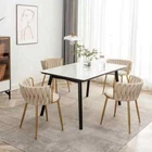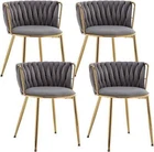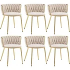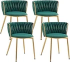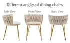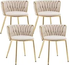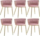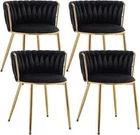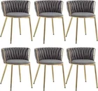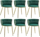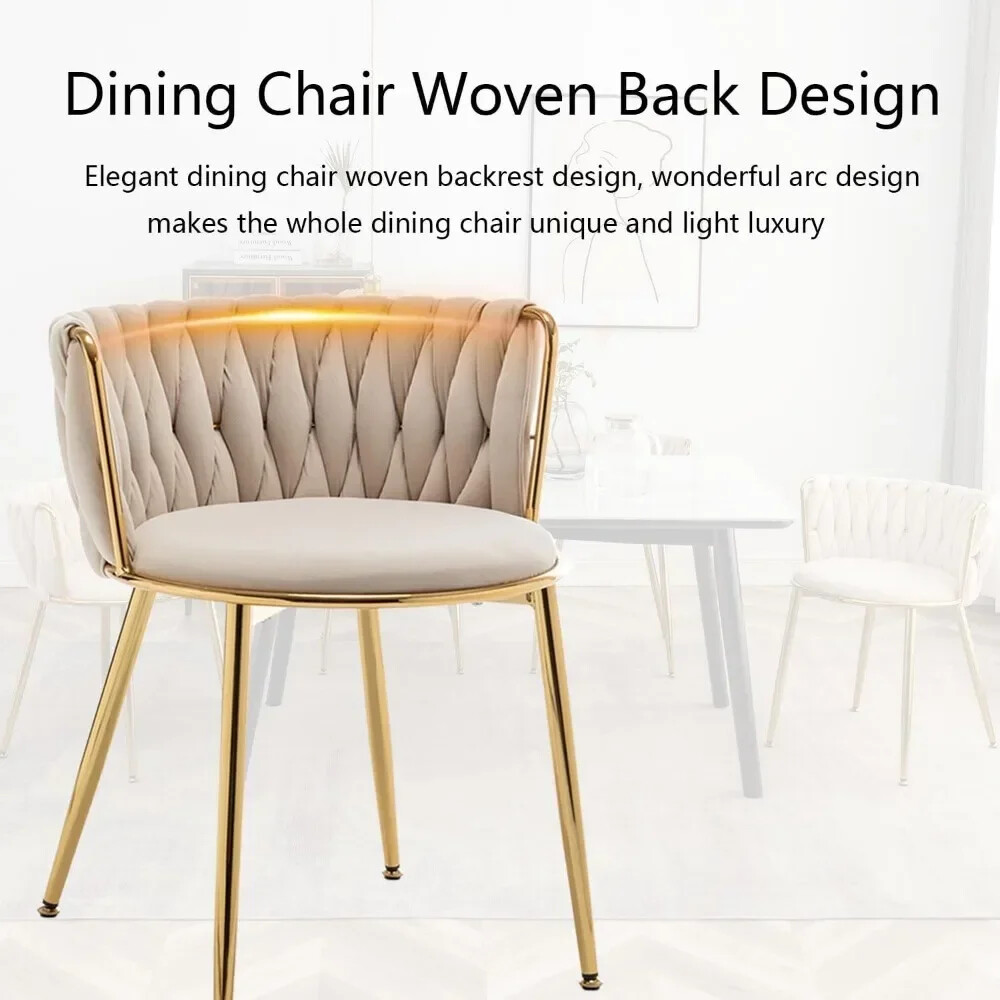 About this item Unique Design: This classic dining chair features a woven backrest design with a gold-plated metal frame for a beautiful and luxurious look. Comfortable Dining Chair: Velvet fabric is comfortable and soft to the touch, high-density sponge cushion, ergonomic tufted backrest, providing better comfort for you and your family. Strong Frame: The dining chair frame is made of solid wood and thickened metal, so the dining side chair is very stable and can support up to 200 pounds. Each leg has height-adjustable pegs, which makes the dining chair better to keep smooth. Versatile: This dining side chair is sturdy and compact and won't take up much space. The luxurious and elegant appearance makes it suitable for dining room, kitchen, living room, bedroom and powder room. Cushion size: 17.7 inches wide and 16.9 inches deep. Please look carefully when purchasing. Product sellpoints Dining Chairs Set Of 6|Velvet Upholstery & Gold Metal Legs:Luxurious velvet upholstery paired with elegant gold metal legs for a sophisticated dining experience. Ergonomic Tufted Backrest:Ergonomically designed tufted backrest ensures comfort during long dinners. Sturdy Woven Backrest:Durable woven backrest offers a classic design with lasting support. Adjustable Height Metal Legs:Adjustable pegs on the metal legs provide stability and smoothness on uneven floors. Versatile Dining & Accent Chair:Versatile design suitable for dining rooms, kitchens, living rooms, and more. Product Description