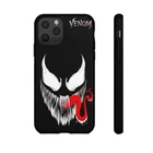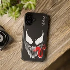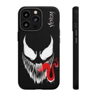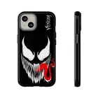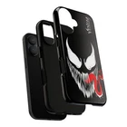 Get a sleek and edgy Venom themed black impact resistant tough case for Apple iPhone models. This extremely durable phone case provides excellent shock absorption, protecting against drops and tears with a stylish Spiderman anti-hero. Perfect for adults who want a stylish and protective phone case for their iPhone. Ideal for Halloween, comic conventions, and everyday use. Product features - 3D wrap with full ink density - UV protected for longterm optical quality - Durable and impact resistant materials - TPU silicone liner for shock absorption - Supports wireless charging Care instructions - Clean with a soft damp cotton or microfiber cloth (add a drop of dish soap if needed). EU representative : HONSON VENTURES LIMITED, 3, Gnaftis House flat 102, Limassol, Mesa Geitonia, 4003, CY Product information : Generic brand, 2 year warranty in EU and Northern Ireland as per Directive 1999/44/EC Warnings, Hazard : For adults, Blank product sourced from South Korea Care instructions : Clean with a soft damp cotton or microfiber cloth (add a drop of dish soap if needed).