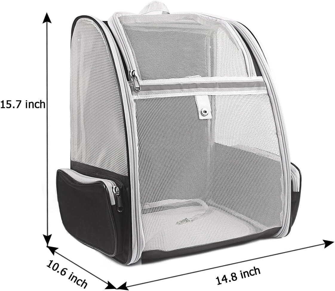 Product Description Comfort & Security: Unique ventilated design for increased communication and interaction with your pet Economical: Adjustable padded shoulder straps and carrying handle for easy handling Ventilate, Safe & Convenient: Breathable mesh holes, built-in security leash, and soft washable pad. Front & side openings with zippers Durable & Spacious: Made of oxford fabric, polyester, and anti-scratch fabric. Holds up to 13 lbs. Measured at 12.8” x 11.6” x 16.5” (LxWxH) Package Includes: Cat backpack, soft mat, and security leash H&E is committed to providing high quality, comfortable and safe travel pet backpacks for more pet lover friends. Premium material made and very easy to use, specially designed for medium and small pets such as puppies/kitties/rabbits/birds. Choosing us can not only offer a comfortable and safe "home" for your pet, but also enhance each other's emotions. H&E Travel Cat Backpack, Offering More Care and accompany for your Pets. Features of H&E Travel Cat Backpack Ventilate and comfortable, with ventilation holes, zippers and soft mat, offer a maximum accessibility and comfortable interspace for your pet. Airline approved pet backpack, approved by most major airlines, which fitting under any airplane seat. Enjoy a good flight with your pet. Middle size for 12.3” x 9.8” x 16” (L x W x H), can hold up to about 9 pounds cats, dogs and other small pet. Two adjustable padded shoulder straps allow you more easier to carry, let you enjoy the trips with your pet. Easy to clean, you can simply switch out the removable mat cover to wash up when dirty. Safe and durable, removable mat cover, makes your pet feel more comfortable. Exclusive Choice For Pet Lovers H&E Cat Backpack He loves this exclusive bubble backpack "house", and he would say thanks to you for your big love!! H&E Dog Backpack He also loves to travel by this beautiful backpack, Not with others, only with you!! H&E Pet Backpack Carrier She likes stay in this backpack quietly with you sometimes, and your acompany will give her peace of mind!! More Safe, More Comfortable, More Convenient With Original Clear Protective Film Comes with original protective film that can effectively prevent scratches to the transparent PET shell. Please remove the protective film before use. Note: parts of the protective film may be fixed on the backpack by a thread and needs to be clean up for better show the shape of the backpack. Middle Size For Medium & Samll Pet Measured size about 12.3” x 9.8” x 16” (L x W x H), which can hold up to about 9 pounds cats, dogs and most other medium and small pet. Note: please measure your pet's height/width/weight before purchasing. Shoulder Straps & Front Buckle Designed Two adjustable padded shoulder straps allow you more easier to carry, you can adjust the length of the strap at any time according to your body shape to achieve the most comfortable carrying posturelet. The front buckle strap can play a good role in fixing to prevent your pet from being frightened by the big shakings in the backpack. Giving Your Pet Colorful "Houses" Foldable Cat Backpack Carrier Pet Backpack Carrier With Leather Dog Backpack Carrier With Bubble Pet Leather Bubble Backpack Front Cat Canvas Backpack Cat Carriers Bag Pink Buying Options Buying Options Buying Options Buying Options Buying Options Add to Cart Customer Reviews 4.3 out of 5 stars 1,104 4.3 out of 5 stars 1,104 4.0 out of 5 stars 22 4.2 out of 5 stars 349 4.0 out of 5 stars 625 4.4 out of 5 stars 5,657 Price — no data — no data — no data — no data — no data $30.99 $ 30 . 99 Size Maps Medium Medium Medium Medium Small Medium Measured Size 13.9” x 9.8” x 16.5”(LxWxH) 13.9” x 9.8” x 16.5”(LxWxH) 13.9” x 9.8” x 16.5”(LxWxH) 13”x8”x15”(L*W*H) 14”x8”x17.5”(L*W*H) 13.9” x 9.8” x 16.5”(LxWxH) Product Material 600D Oxford Cloth+PC Anti-Scratch Leather+PC 600D Oxford Cloth+PC Premiun Anti-Scratch Leather 600D Oxford Cloth 600D Oxford Cloth+PC Max Load bearing Weight ≤12 lbs. ≤12 lbs. ≤12 lbs. ≤12 lbs. ≤7 lbs. ≤12 lbs. Anti-Scratch ✓ ✓ ✓ ✓ ✓ ✓ Brand New Packaging ✓ ✓ ✓ ✓ ✓ ✓