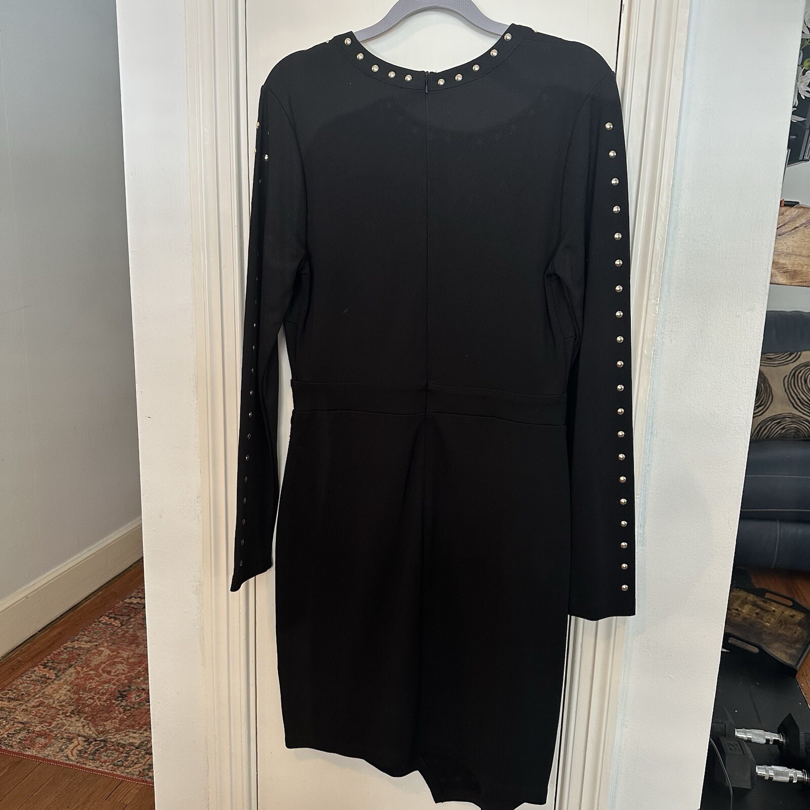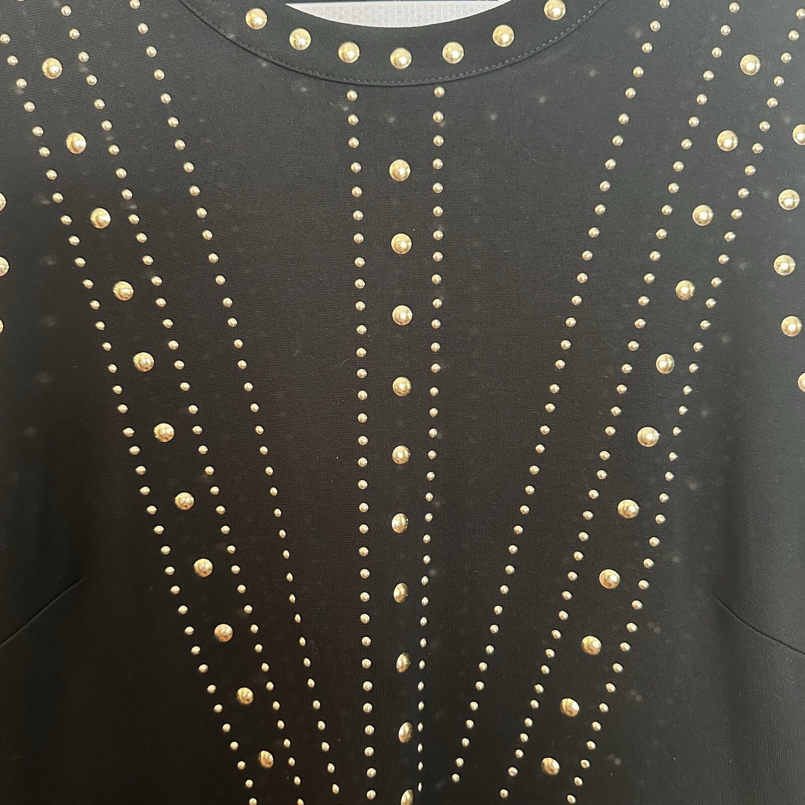 This is in brand new condition. Honestly, I don't think it's ever been worn . This is black black. No discoloration or fading. I know sometimes the pictures might look that way, but that is not the case with this dress. Armpit to armpit 17" Waist 15" Shoulder to hem 37"