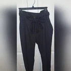 Venus Linen Cotton Blend Black Waist Tie Wide Leg Pant Size 12 Travel Vacation