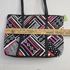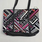 Vera Bradley Small Trimmed Vera Tote in the print “Northern Stripes,” style number 14300-673481. Features quilted cotton with faux leather trim and long shoulder straps. Includes the original retail hangtag. Bag appears unused but does have a monogram (“HSM”) stitched on the front pocket. DETAILS: • Style: Small Trimmed Vera Tote • Pattern: Northern Stripes • Style #: 14300-673481 • Faux leather bottom and trim • Zip top closure • Exterior slip pocket • Spacious interior with slip pockets • Original hangtag included • Monogram initials “HSM” on the front pocket CONDITION: Bag appears unused and clean inside and out. Original tag included. Small stitched monogram (“HSM”) is present—please see photos. No stains, odors, or major wear