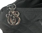 This Vera Bradley clutch is a stunning addition to any outfit. The quilted pattern and black exterior material give it a classic look, while the gold hardware on the zipper pull adds a touch of elegance. Measuring 12.5 inches in width, 7 inches in height, and 3 inches in depth, this small bag is perfect for carrying your essentials. The zipper closure keeps your items secure, and the black lining color complements the exterior perfectly. This clutch is a vintage piece, and the brand is well-known for their high-quality products. It's a must-have for any woman who wants to make a statement with her accessories.