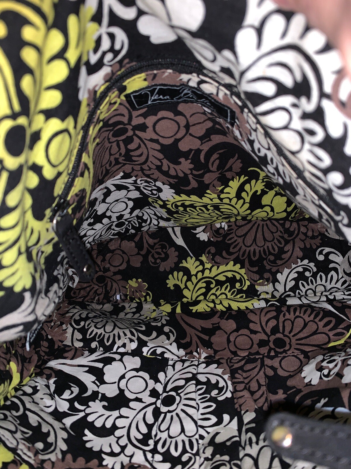 Vera Bradley Black Tote Purse. Condition is Pre-owned but never used. Shipped with USPS Priority Mail for $1 9.99. This adorable purse is like brand new at a used price. You can’t go wrong with this purse. Thank for shopping this item and my many others. Please no outside U.S. purchases.this purse measures 13 inches by12 inches high.