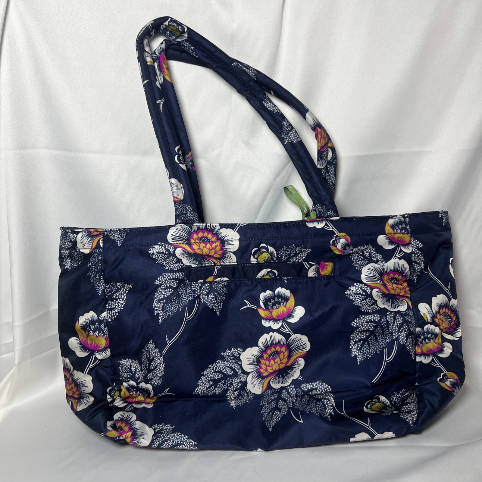 The Vera Bradley Blue Floral Tote is a large rectangular bag with a quilted exterior made of cotton. Featuring a beautiful floral pattern in a multi-color design, this tote has double handles and a 12-inch strap drop for easy carrying. With outer and inner pockets for organization, this stylish and spacious bag is perfect for everyday use. The Vera Bradley brand is known for its quality craftsmanship and this tote is no exception, making it a great addition to any woman's wardrobe.