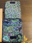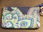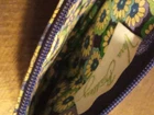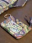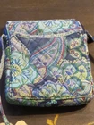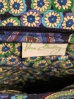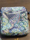 This is a Vera Bradley Crossbody Purse/handbag with a matching change purse/ID holder. The exterior is made of cotton in a multicolor design, with silver hardware accents. It features a zip closure and is suitable for travel or casual occasions. The lining also has a multicolor pattern, and the handle/strap is made of cotton. This stylish and functional accessory is perfect for women on the go. Item is pre-owned and has some wear on the strap.
