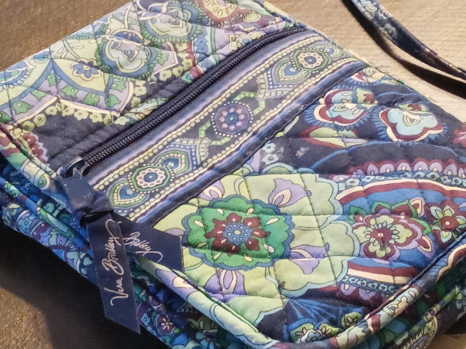Love this Vera Bradley crossbody! The colorful design is so fun, and it’s super lightweight yet fits all my essentials. The matching ID holder is a nice bonus, and the zipper keeps everything secure. Perfect for running errands or traveling—super convenient. The strap shows a bit of wear, but it’s still sturdy and comfy. Such a great find!