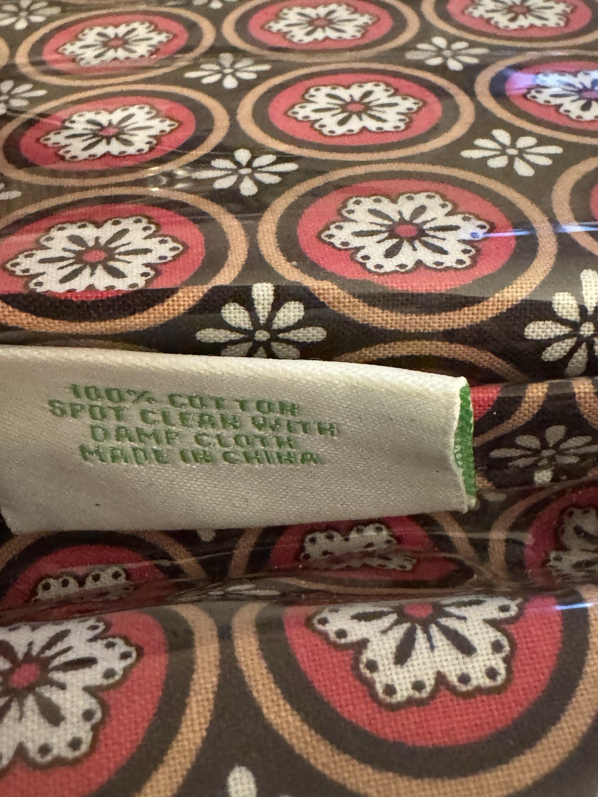 Retired Vera Bradley Sittin’ in a Tree quilted cotton hand purse with framed kisslock clasp. Features the charming bird and floral pattern in chocolate brown, white, and pink. • Retired pattern • Metal double-ball clasp closure • 100% quilted cotton with coordinating interior print • Spot clean only • Made in China • Great for glasses, makeup, or small accessories Condition: Excellent pre-owned condition with bright color and clean interior (see photos).