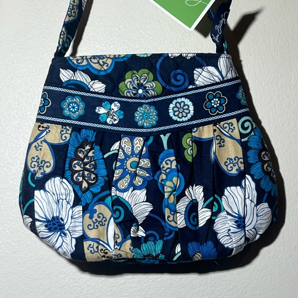 Vera Bradley Hannah Small Pleated Satchel Bag Mod Floral Blue Retired New 8hx9w Stylish and vibrant, this Vera Bradley Hannah pleated small satchel bag features a beautiful blue floral design in the print Mod Floral Blue which originated in 2007 and is now retired. Zipper closure, two interior pockets, machine washable. Perfect for adding a pop of color to any outfit. Condition- new with tag Size-8 tall by 2.5 deep by 9 wide. Strap drop of 6.75 inches. Color - blue and white floral print Material Content- blend of: 100% cotton My items are primarily thrifted and I do my very best to note any imperfections/callouts. Wash to wear - use measurements provided and match to clothes you currently own to determine best size match Ships Next Day Monday - Friday My items are stored in a pet/smoke free home Thanks for stopping in and looking! Lisa