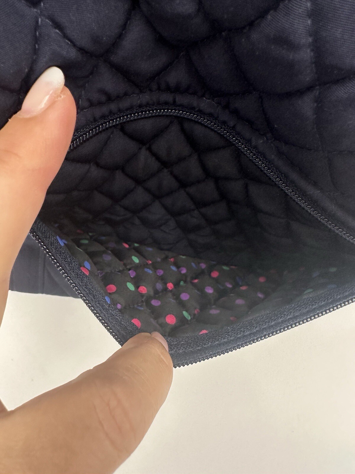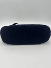 This Vera Bradley tote bag is a versatile accessory for any woman. With a solid navy blue exterior made of microfiber and a quilted finish, this bag is perfect for travel, casual outings, workwear, or business settings. It features a button and toggle closure, double handles with a 12-inch drop, and adjustable straps. The bag has a large size, measuring 17 inches in width and 15 inches in height, and it comes with inner and outer pockets for ample storage. The lining is made of blue fabric, and the hardware color is silver. This classic tote bag is from the Vera Bradley brand and is suitable for any occasion.
