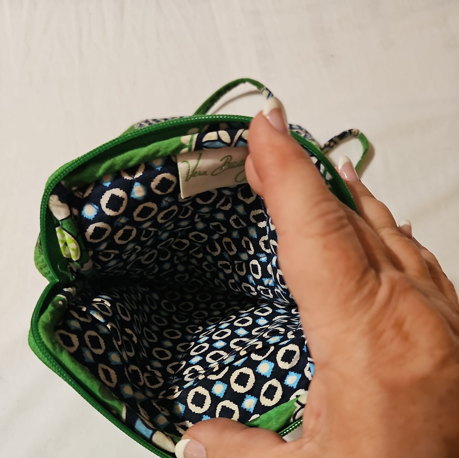 The Vera Bradley Mini Hipster Crossbody Shoulder Cupcake Green Paisley Floral Purse is a stylish and versatile accessory perfect for various occasions such as travel, parties, casual outings, and workwear. This mini purse features a rectangular shape with a vibrant floral pattern in green and multicolor hues, making it a standout piece in any outfit. The quilted cotton exterior and cotton lining ensure durability and comfort, while the adjustable crossbody strap adds convenience and flexibility. Ideal for women on the go, this Vera Bradley purse combines fashion and functionality effortlessly with its strap accent and practical features. SEE PICS FOR CONDITION AND ANY DAMAGE 3