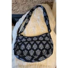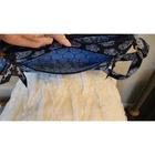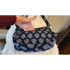 The Vera Bradley Quilted Crossbody Bag in Calypso Blue is a stylish and lightweight handbag purse made of cotton with a quilted finish. This small-sized bag features a crescent shape and a zip closure, making it perfect for travel, parties, or casual occasions. The Calypso Paisley pattern and hippie/bohemian theme give it a unique and trendy look, while the shoulder strap handle adds convenience for on-the-go use. With inner pockets and a retired print design, this Vera Bradley bag is a must-have for any fashion-forward woman. The bag has 2 exterior pocket with snap flaps that are super stylish. Excellent pre-owned condition.