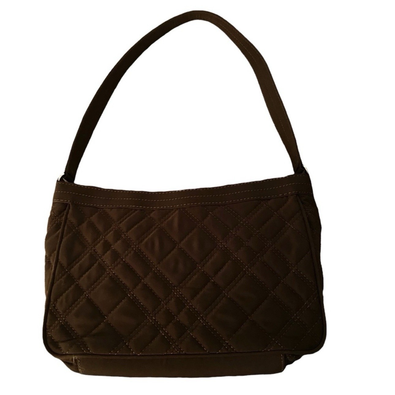 Vera Bradley Quilted Microfiber Zippered Shoulder Bag in Classic Espresso Brown. The timeless silhouette of this satchel is truly classy. The roomy single compartment features pockets aplenty to keep things organized. The front pocket is ideal for keys or a phone with a zippered closure to keep them secure. Stylishly fun black and white zebra animal print interior. Details: Color/Pattern: Classic Brown Material: 100% Cotton Silver-toned hardware Interior: Animal print lining, 2 Multifunction slip pockets, Zippered back wall pocket Signature VERA BRADLEY sewn-in label Exterior: Zippered top closure, Single handle with 9 ½” strap drop, Front pocket with zippered closure, Diamond-shaped stitching details Measurements 7” tall at the center 3 ½” deep 12” top width, 11” bottom width Weighs approximately 8.4 oz Condition: Pre-owned in very good condition! Interior is clean with no lint but there is some wear on the edges as shown in photos. Check out my other listings to bundle and save!