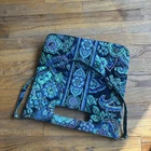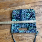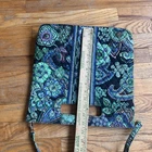 The Vera Bradley Blue Rhapsody Crossbody Square Tote is a medium-sized handbag with a floral pattern in blue, green, black, and purple. It features a square shape and a detachable crossbody strap, making it versatile for travel, casual outings, or workwear. The bag is made of cotton with a multicolor lining, and is part of the Vera Bradley Hipster product line. This stylish and functional handbag from Vera Bradley is a perfect choice for women looking for a fashionable and practical accessory.