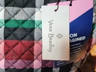 The Vera Bradley Large Tote Bag in Quilted Ribbons Plaid is a stylish and spacious handbag designed for women. Featuring a magnetic closure and a multicolor plaid pattern with quilted accents, this cotton tote exudes a trendy and comfortable vibe. The large size provides ample room for all your essentials, while the inner pockets add functionality to the design. Perfect for any woman looking for a fashionable and practical accessory to complement her everyday outfit.