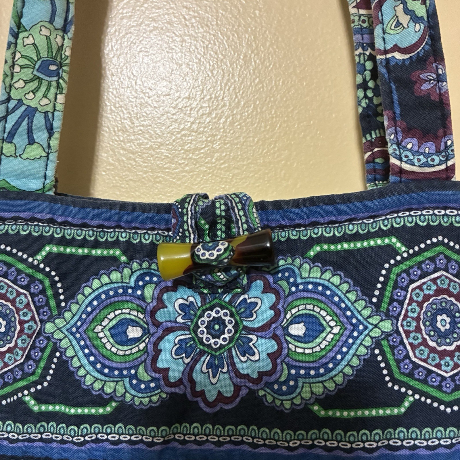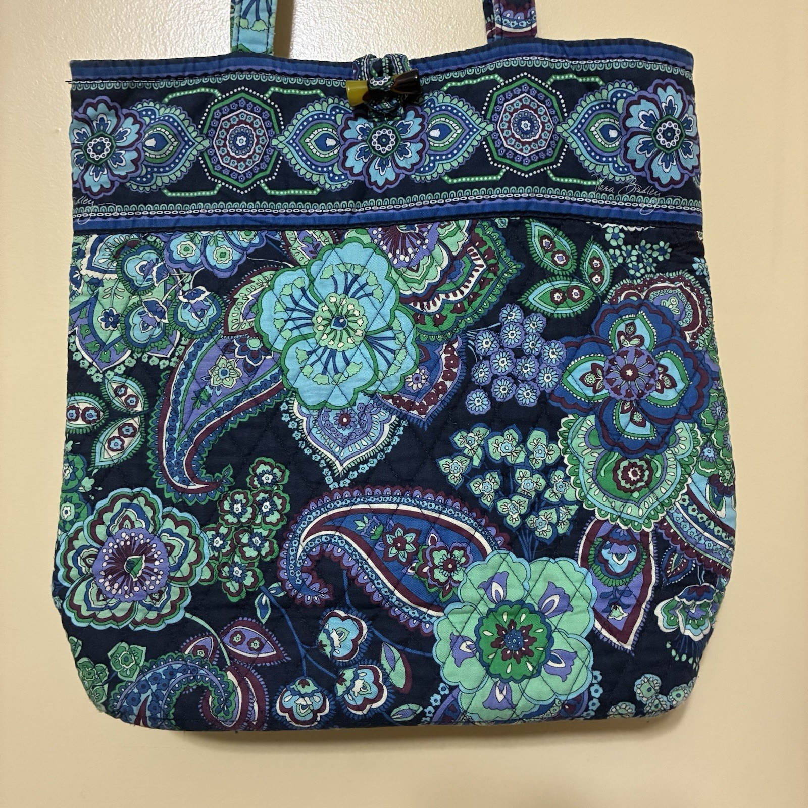 Vera Bradley Shoulder Bag Blue Rhapsody Retired Rare Quilted Bag is in good pre-owned condition. No defects or stains. The Vera Bradley Shoulder Bag in Blue Rhapsody is a rare and retired quilted handbag featuring a floral pattern. Made of cotton, the medium-sized bag has a beautiful blue exterior with a multicolor lining. It has a convenient toggle closure and a comfortable cotton handle/strap for easy carrying. Perfect for women looking for a stylish and practical accessory to add to their collection.