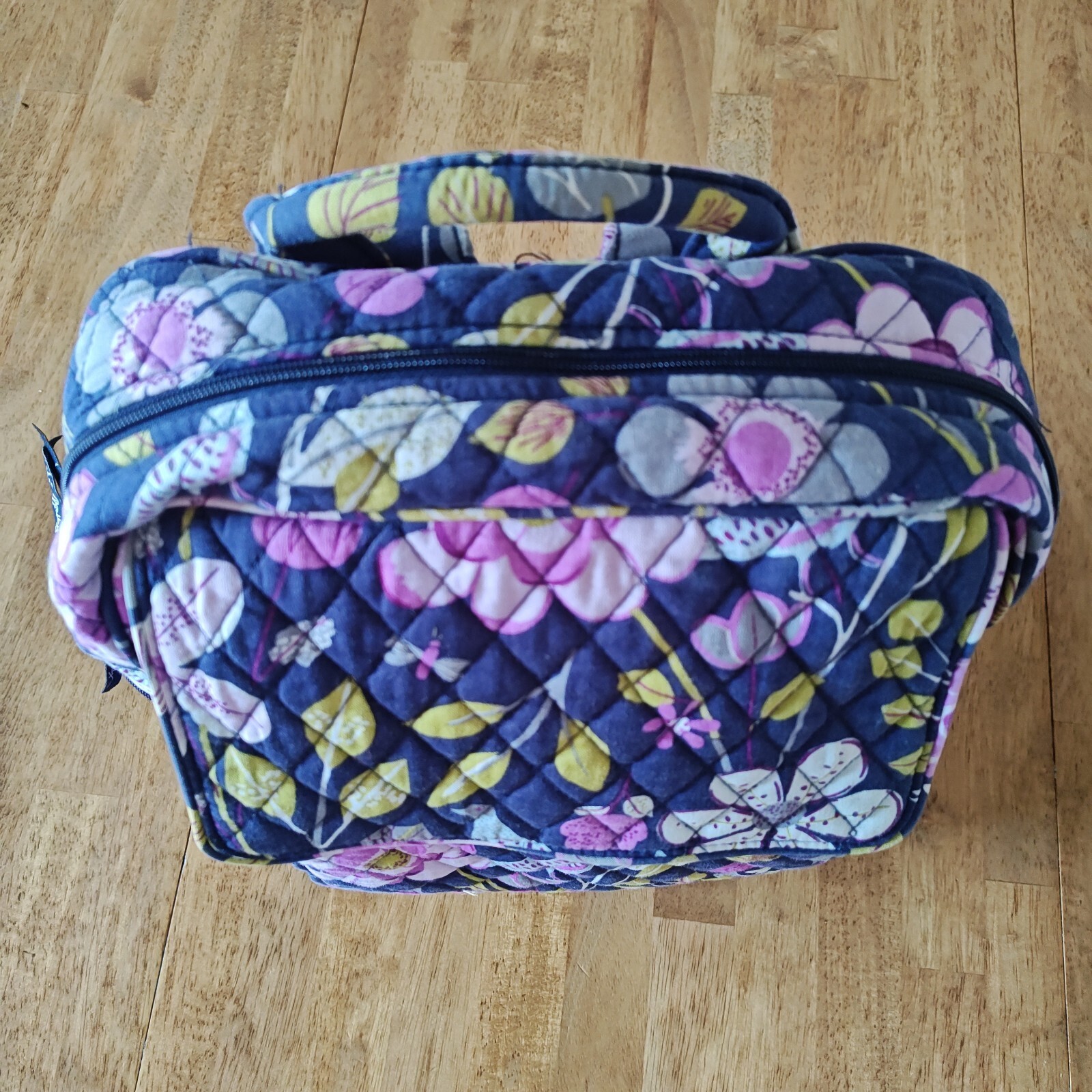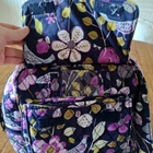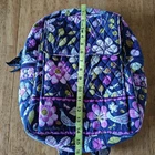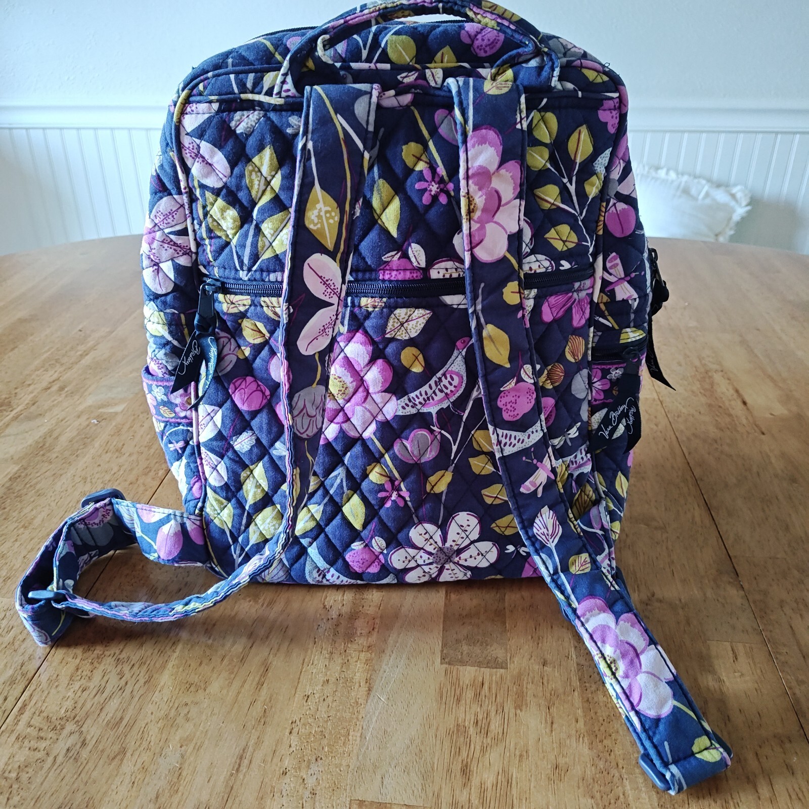 Vera Bradley Floral Nightingale Pattern Backpack-Style Purse Purple With Birds This bag has been hand washed a couple times and shows wear on the straps mainly in fading but there are no tears or holes. Thanks for looking!