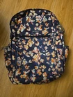 This Vera Bradley backpack is a stylish and practical accessory for any woman. The navy blue exterior features a colorful floral pattern that is sure to catch the eye, while the zip closure keeps your belongings secure. The backpack is made of nylon polyester, making it durable and perfect for everyday use. The interior lining is also navy blue, adding a cozy touch to the bag. The backpack is large in size and has plenty of pockets to hold all your essentials. It's perfect for use in a variety of settings, from work to travel. This backpack is part of the Vera Bradley product line and is designed to provide both style and functionality.