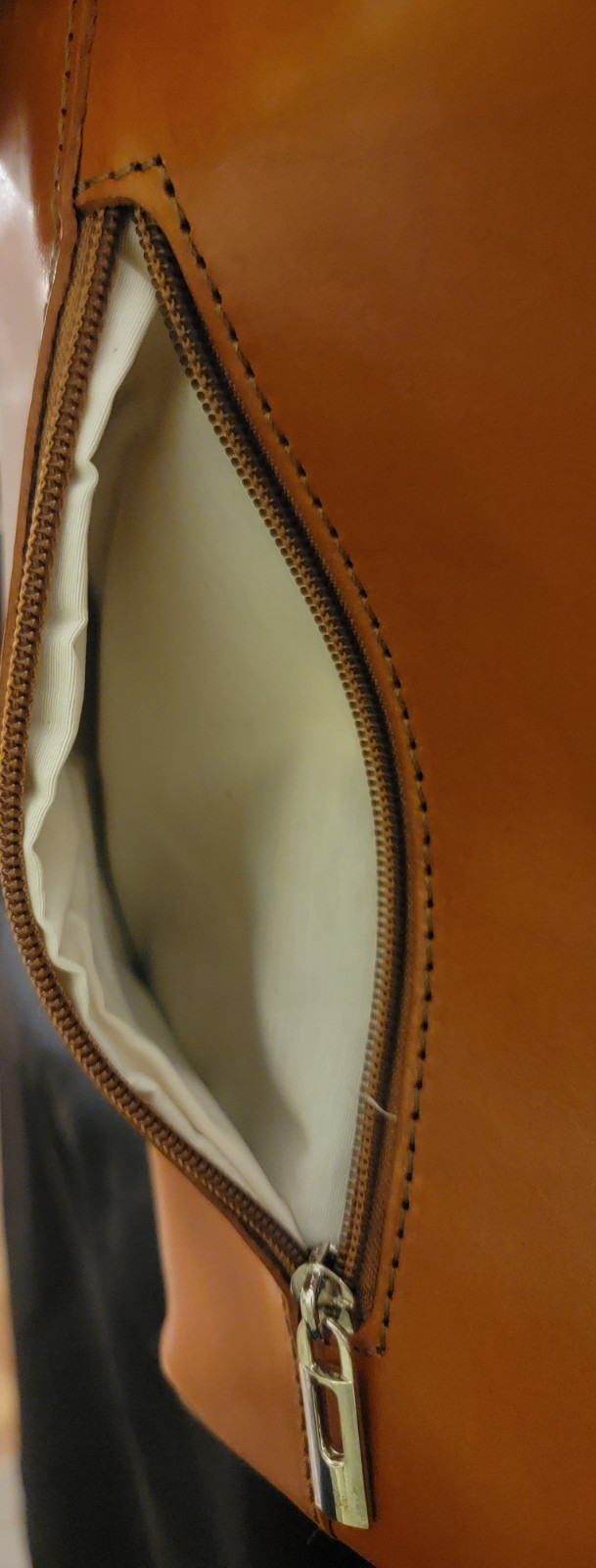 This Vera Pelle made in Italy genuine leather brown purse/backpack is a stylish and versatile accessory for women. The medium-sized bag features a solid brown exterior with a zip closure and a top handle in the same brown leather material. The Italian-themed backpack style offers practicality with its fabric lining in a coordinating brown color. Perfect for adding a touch of luxury to any outfit, this high-quality bag from Vera Pelle is a timeless piece for any wardrobe.
