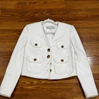 Veronica Beard Isola Jacket Off White Cotton Blend Piqué Blazer Size 00 Cropped Tailored Excellent used condition! Minor signs of wear on cuffs Designed in a cotton-blend piqué fabric with subtle stretch, this refined blazer combines comfort and structure for a polished, modern look. Perfect for work, brunch, or layering year-round, the Isola Jacket features a cropped length, V-neckline, and signature Veronica Beard tortoiseshell buttons. Lightweight yet structured, it’s the ideal statement layer over dresses, trousers, or denim. • Color: Off White / Ivory • Material: 97% Cotton, 3% Spandex (stretch piqué) • Fit: Tailored, cropped (approx. 21” length) • Features: Tortoise button front, chest and hip flap pockets, fully lined, padded shoulders • Care: Dry Clean Only Measurements are approximate Please expect wrinkles from Storage !!