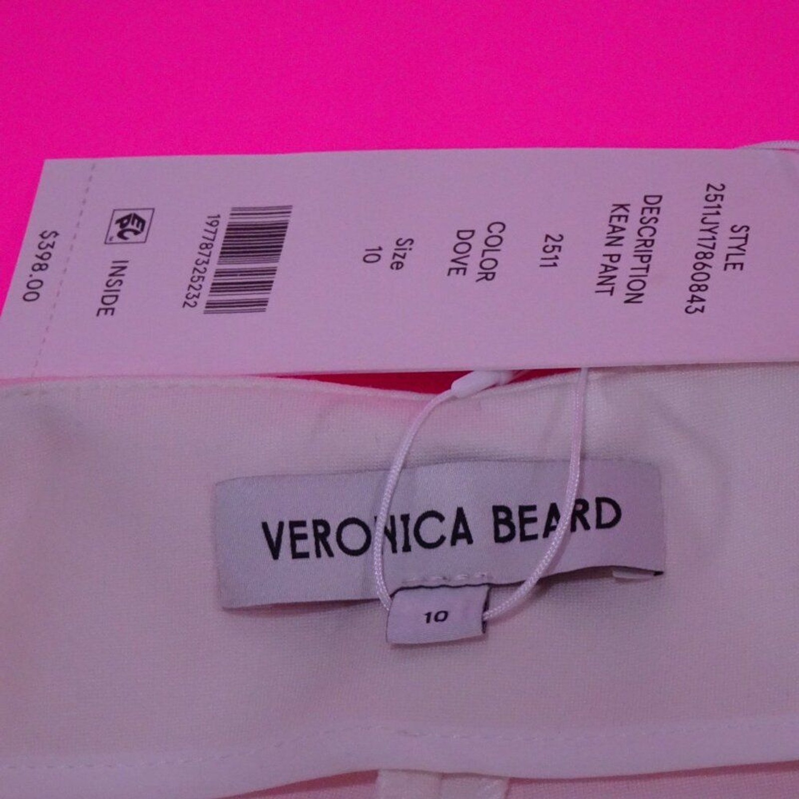 Veronica Beard Kean Pant Cropped Pants Dove Cream NWT 398.00 Size 10 Here's the scoop ... Features Front zipper closure Slit pockets at hips, welt pockets at back Lined Made in USA of Imported Materials Size & Fit Fits true to size, order your normal size 10.75" rise, 27" inseam, 15" leg opening, based on a size 4 Model measurements: 5'10" height, 33.5" bust, 23.5" waist, 34.5" hips, wearing a size 4 Materials & Care 68% viscose/28% polyamide/4% elastane; lining: 100% polyester Dry clean ABOUT THE BRAND Sisters-in-law by marriage, friends by choice, Veronica Swanson Beard and Veronica Miele Beard are the designers behind their eponymous brand, Veronica Beard. Inspired by a yearning for clothes you can live in and the ease of menswear, Veronica Beard started with the goal of creating a functional, stylish uniform for women defined by classic jackets, versatile tops, and ultra-flattering jeans. Launched in 2010 with its now-iconic Dickey jacket, and growing its collection to include tops, denim, and dresses, the brand crafts wardrobe essentials for women who get things done. Features