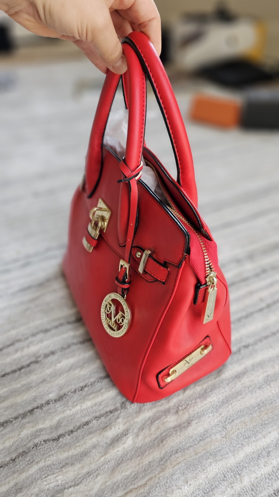 This stunning Versace 1969 tote is the perfect addition to any fashion-forward woman's collection. Crafted from high-quality red leather, this medium-sized bag features a bold red handle/strap and is lined with a matching red fabric. The interior boasts a luxurious gold Versace logo and is perfect for storing all your essentials. This tote is versatile and can be carried as a statement piece or for everyday use. The model is named after the iconic Abbigliamento Sportivo SRL and is a true collector's item.