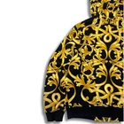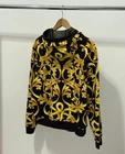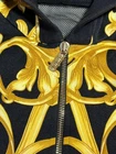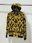 Versace Baroque Zip Hoodie – Black/Gold – Size L – Made in Italy Iconic Versace hoodie featuring the black/gold baroque (acanthus) print. Soft cotton jersey with rib cuffs/hem, mesh-lined hood and gold-tone metal zip (Lampo hardware). Details Brand: Versace Type: Full-zip hoodie (men’s) Color/Pattern: Black & Gold, Baroque/Acanthus Fabric: Cotton jersey (rib trim cotton/elastane; hood mesh lining polyester – see care tag photo) Hardware: Gold-tone branded zipper Made in: Italy Pockets: 2 front hand pockets Season: All-season / streetwear Condition Good (pre-owned) light general signs of wear only. No holes or major stains. Zipper works smoothly. Note: The back neck brand tag has been removed . CLG authenticity label is present and can be checked online (Certilogo). Please review all photos Ships DHL Express with tracking , usually 3–7 business days worldwide. Orders packed carefully; tracking uploaded on eBay. Buyers are responsible for any import duties according to local rules.