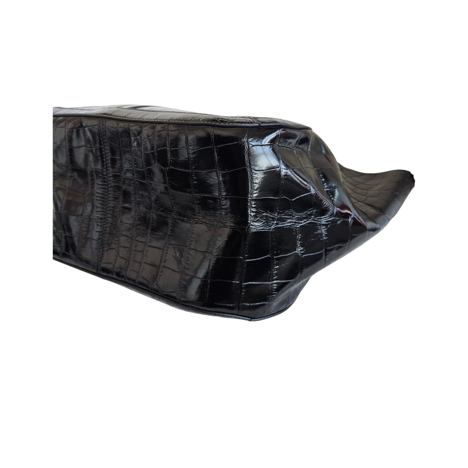 Versace Black Large Greca Goddess Tote Bag Attributes Material: Croc Embossed Leather Color : Black Condition Desc. : Very Good, has creased Leather Inclusions : Box, Dust Bag