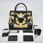 ******** PLEASE DO NOT BOTHER AND WASTE YOUR TIME BY MAKING ANY OFFERS ******** Baroque flourishes deliver eye-catching drama to a pristine structured satchel crafted in Italy from supple calfskin leather and trimmed with a tonal Medusa-head plaque. Rolled handles, an optional strap and plenty of interior pockets heighten the versatility of the impeccable style. * Black calf leather construction with black leather trim * Palazzo empire baroque print * Gold-tone hardware * Hand painted edges * Rolled top handles with 3" drop * Detachable and adjustable wide synthetic strap with 22.5" drop * Removable and adjustable thin leather strap with 20.0" drop * Medusa head embellishment * Push-lock flap closure * One inside main compartment * One interior zip wall leather pocket with Medusa head iconic * Two interior slip leather pockets * Wool-blend lining * Protective feet * Measurement approx 10.0" W x 8.5" H x 4.5" D * Style ID# DBFF452 DVBAR2 * Designer dust bag, authenticity cards, store receipt included * Made in Italy ****** FIRM PRICE AND NOT REPLY FOR ANY OFFER MESSAGES ****** 100% Authentic Guaranty FREE SHIPPING WITHIN THE US ONLY