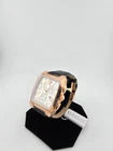 Versace Character Men’s Chronograph Swiss Watch - WLC80D001-S008 ($2200 MSRP) New with Gift Box and Tags! This watch is a Shelf Pull from one of the Major Department Stores. May find few micro scratches on the watch case/band, visible under a direct and strong light. Experience the pinnacle of sophistication with the Versace Character Men’s Chronograph Swiss Watch – WLC80D001-S008. This exquisite timepiece showcases a stainless steel case paired with a luxurious black calfskin leather strap, offering both durability and style. The fixed rose gold-plated bezel frames a striking white dial adorned with rose gold-tone skeleton hands and elegant Roman numeral hour markers. Minute markers around the outer rim add a touch of precision to its classic design. Functionality is at the forefront of this chronograph watch, featuring three sub-dials that display 60 seconds, 30 minutes, and 1/10th of a second, allowing for accurate timekeeping and measurement. The date display positioned at 4 o'clock enhances its practicality, while the quartz movement ensures reliable performance. Protected by a scratch-resistant sapphire crystal, the watch maintains clarity and resilience, and its solid case back underscores its quality craftsmanship. With a 36mm tonneau-shaped case that has a thickness of 11.5mm, this timepiece strikes a perfect balance between elegance and robustness. The 16.7mm band width and butterfly clasp provide a comfortable and secure fit, while its water resistance of up to 30 meters (100 feet) adds a layer of practicality. Combining timeless design with advanced features, the Versace Character Men’s Chronograph Swiss Watch is a sophisticated accessory that perfectly complements the modern gentleman’s wardrobe. Features Stainless steel case with a black (calfskin) leather strap. Fixed rose gold-plated bezel. White dial with rose gold-tone skeleton hands and Roman numeral hour markers. Minute markers around the outer rim. Dial Type: Analog. Date display at the 4 o'clock position. Chronograph - three sub-dials displaying: 60 second, 30 minute and 1/10th of a second. Quartz movement. Scratch resistant sapphire crystal. Solid case back. Case diameter: 36 mm. Case thickness: 11.5 mm. Tonneau case shape. Band width: 16.7 mm. Butterfly clasp. Water resistant at 30 meters / 100 feet. Functions: chronograph, date, hour, minute, second. Fast and Free Shipping You're already purchasing the item. Why pay additional for shipping, especially slow shipping? We get your order shipped out within 1-business day and delivered to your doorstep as quickly as possible. Competitive Pricing With our dynamic pricing model, our prices are always competitive. Our prices are some of the lowest that you will find on the internet. Rest assured that you're getting a good deal when purchasing with us. 30-day Money Back Guarantee We are committed to making sure that you leave this transaction satisfied. If you're unhappy with the product for any reason, you may return it back for your money-back or a replacement within 30 days. No questions asked!