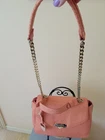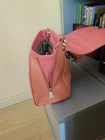 Gorgeous 100% Authentic Versace Collection Tote Handbag Material: Leather Details: Versace logo, 1 main compartment, 1 interior zip pocket, 2 small interior pockets a gold-tone hardware and chain strap with leather handle. Gold zipper on sites that open up Measurement 12 in x 10 in x 5 in. Color: Corallo MSRP: $1,195 Picture of tag attached on inside of bag with Versace's CLG Authentication Code Dust bag is included Worn with love. Shows signs of wear. Please see pictures for details. Will accept a reasonable offer
