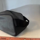 This is a rare find for Versace fans. A medium-sized travel bag with a zip-around closure and a leather bottom in grey and black. The bag measures 11 inches in width, 5 inches in height, and 5 inches in depth, making it perfect for travel. The exterior features the iconic Versace logo and is made of artificial leather. This limited edition bag is perfect for anyone looking for a stylish and functional travel accessory. Its vintage design adds a touch of sophistication to any outfit. The bag is suitable for both men and women. Don't miss out on the chance to own this unique Versace travel bag.