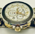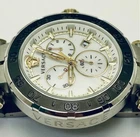 *ACTUAL PHOTOS OF THE ITEM* BRAND:Versace MODEL: Greca Chrono VEPM CONDITION: Pre-Owned Very Good Condition. The watch has some scratches on the band, which can be seen in the pictures. Comes in original box along w/ extra links, size 8 1/2". COLOR: Gold & Silver AUCTION INCLUDES: (1) Versace GRECA CHRONO Watch VEPM Men's Stainless Steel Quartz 45mm Watch *SHIPPING* WE SHIP TO ( LOWER 48 STATES ) OF THE UNITED STATES. WE DO NOT SHIP TO HAWAII, ALASKA OR P.R. Items valued over $250.00 will be shipped with insurance and signature confirmation. *FEEDBACK* We are committed to your satisfaction and earning 5 stars in each feedback category. If you feel that we don't deserve 5 stars please contact us by email or phone and we will make every effort to earn the 5 stars. PLEASE DO NOT LEAVE NEGATIVE FEEDBACK BEFORE CONTACTING US AND ALLOWING US TO RESOLVE THE ISSUE. Thank you for your business.