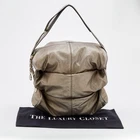 Crafted from leather, this hobo from Versace is designed with minimal style but it represents durable construction. The spacious interior of the bag is lined with satin and the hobo is held by a single handle.Certified by The Luxury Closet - This item has gone through a detailed authentication process overseen by our experts. We offer a lifetime guarantee of authenticity on all our items. Import duties, taxes and charges are not included in the item price. These charges are the buyers responsibility. Please check with your country’s customs office to determine what these additional cost will be prior to buying. Our eBay Store About Us Contact Us Add to Favorite Sellers Versace Metallic Grey Leather Hobo $240.9 Crafted from leather, this hobo from Versace is designed with minimal style but it represents durable construction. The spacious interior of the bag is lined with satin and the hobo is held by a single handle. Product Details Brand Color Metallic Dimensions Height: 36 cm, Width: 16 cm, Length: 36 cm Material Leather Size Outsole Width Outsole Length Heel Height Includes The Luxury Closet Packaging Certified by The Luxury Closet This item has gone through a detailed authentication process overseen by our experts. We offer a lifetime guarantee of authenticity on all our items. How We Check The in-house team of experts at The Luxury Closet is highly trained to verify the authenticity and the condition of the luxury products. They ensure that only 100% authentic items are put on sale.The evaluation process is unique with its own mix of assessment criteria and differs according to the category. Each item is evaluated based on the following combination of hallmarks, hardware, stitching, symmetry, material, craftsmanship, stamping, codes, hologram stickers, and packaging. Our authenticators also check if the items have been modified or amended (e.g., aftermarket diamonds, replaced batteries, repaired bags, etc.) International Buyers Import duties, taxes and charges are not included in the item price. These charges are the buyers responsibility. Please check with your country’s customs office to determine what these additional cost will be prior to buying.