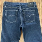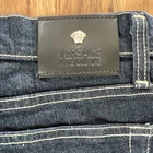 Elevate your denim game with these Versace Jeans Couture high rise straight leg jeans. The button closure and 5-pocket design are accented with the iconic Versace brand, adding a touch of classic luxury to your wardrobe. These jeans are made in Italy with a medium wash and solid blue color, crafted from a comfortable cotton blend fabric. Featuring a regular fit and 34-inch inseam, these jeans are perfect for any season. They can be easily machine washed for low maintenance care. Add these timeless jeans to your collection for a chic and effortless look.
