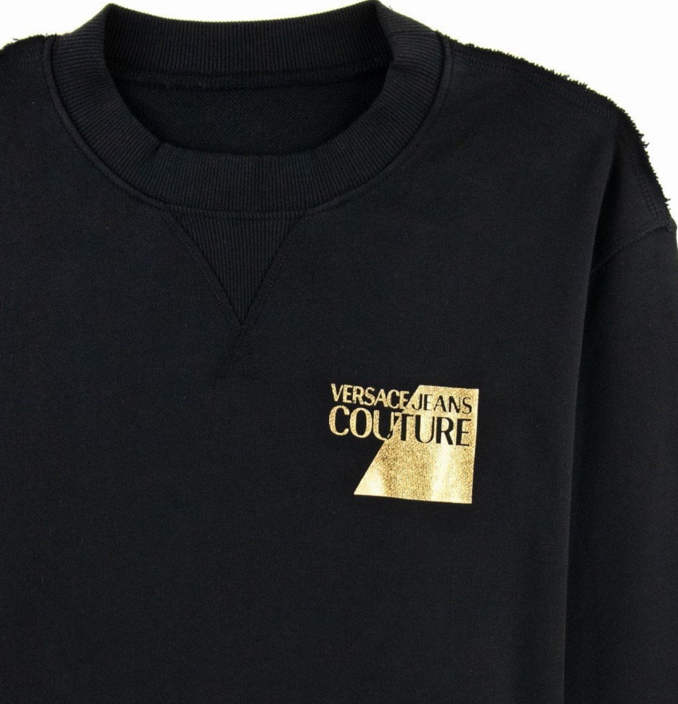 The Versace Jeans Couture Metallic Logo-Print Cotton Sweatshirt in black, Size M is a stylish pullover for men featuring a round neckline and long sleeves. Made from comfortable cotton material, this sweatshirt showcases the brand's logo accents, giving it a trendy and metallic touch. Perfect for the winter and spring seasons, this black sweatshirt is a versatile addition to any wardrobe, adding a touch of high-end fashion with its Versace Jeans Couture branding and design. This sweatshirt is a must-have for those looking for a classic and fashionable piece.