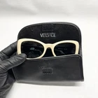 Vintage Y2K Diesel Sunglasses & Case Brown Shield Wrap Style White Leather